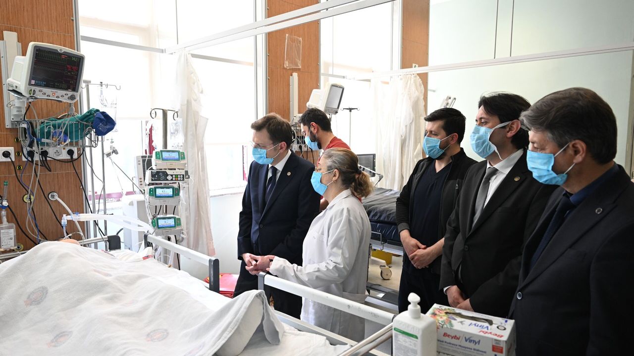 Kahramanmaraş Sütçü İmam Üniversitesi Rektörü Prof. Dr. İbrahim Taner Okumuş ve hastane yönetimi eşliğinde tedavi altındaki öğrencilerle bir araya gelen Yerebakan, yaralıların sağlık durumuna ilişkin yetkililerden bilgi aldı.