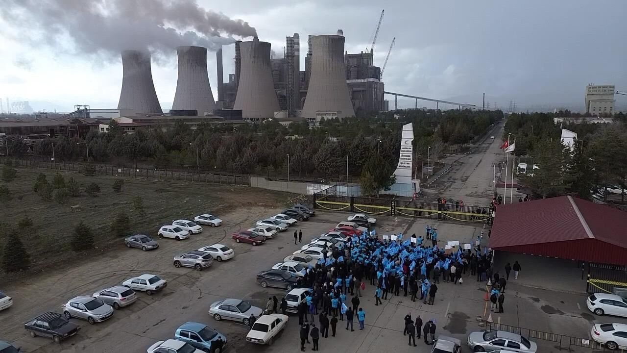 Sloganlar eşliğinde yürüyen işçiler, santral girişinde toplanarak çalışma koşulları, işten çıkarmalar ve iş güvenliği konularında tepkilerini dile getirdi.